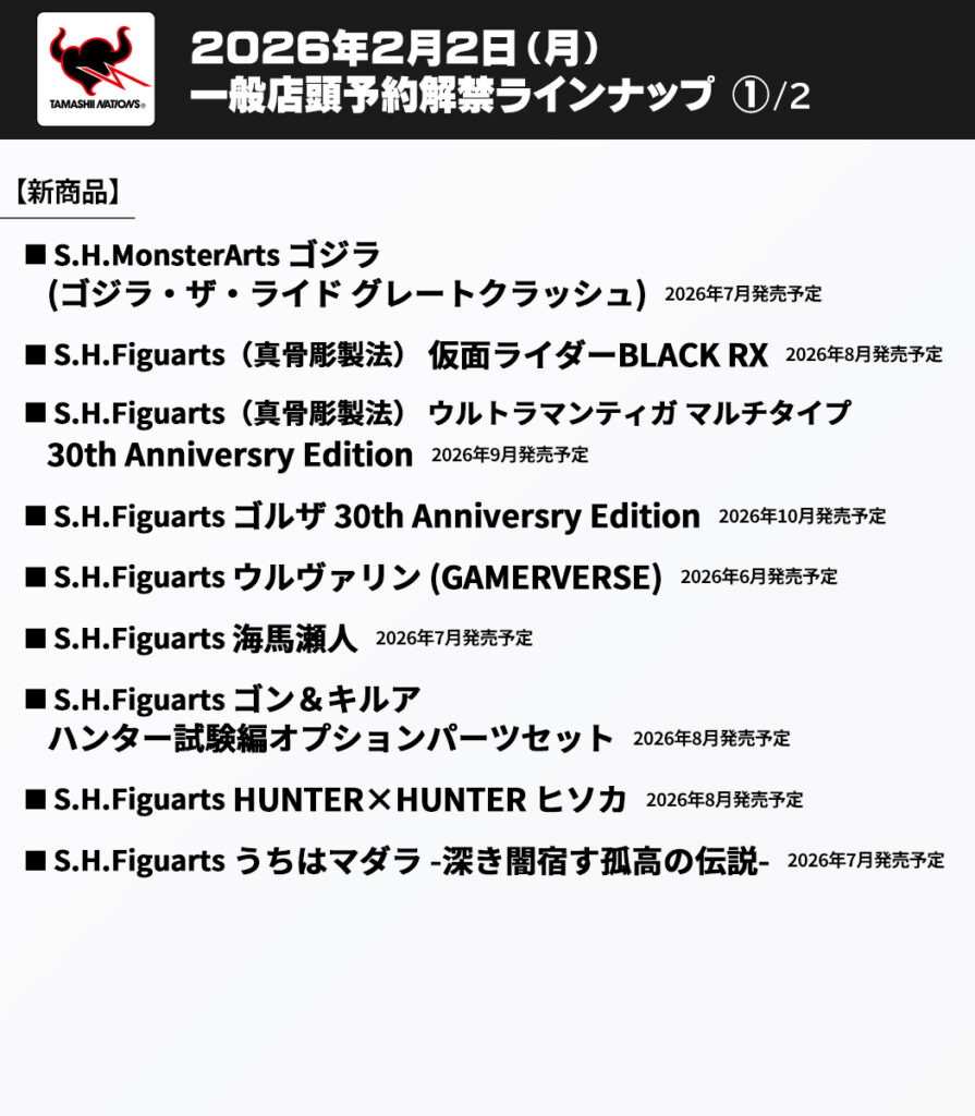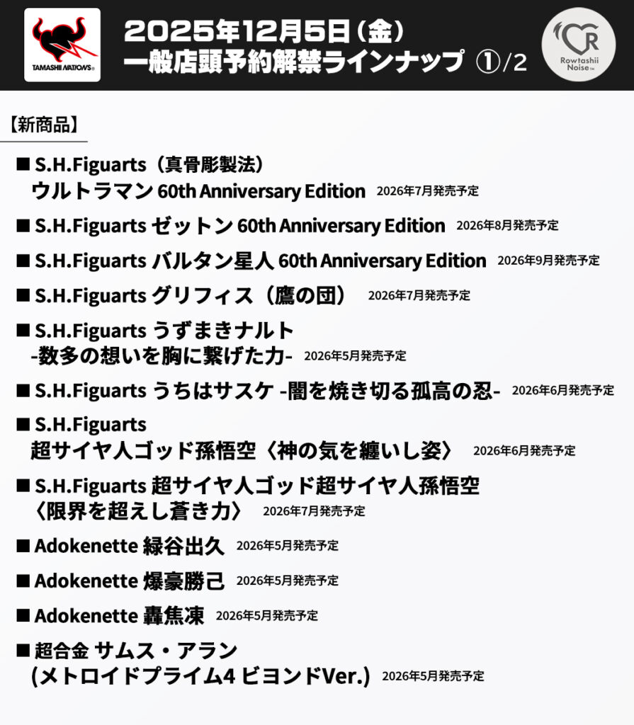 S.H.Figuarts(真骨彫製法)ウルトラマン 60th Anniversary Edition 4573102721136 2026年7月発売 |  | 15,400 | Amazon DMM 駿河屋 あみあみ ホビーリンク ホビーストック アニメイト メタルボックス 楽天ブックス Yahoo 楽天市場 au PAY |