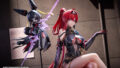 髪先にかけて施された繊細なグラデーション、衣装は質感の再現を重視し、武器は塗装にもこだわり重量を感じさせる仕上がりに。