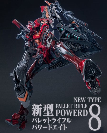 さらに、背部に装着可能な無線給電装備「マイクロ波レーザー給電レクテナ」をはじめ、「新型パレットライフル パワードエイト」「N2爆雷ラック」「ロンギヌスの槍」など、作品を象徴する各種武装が豪華付属。